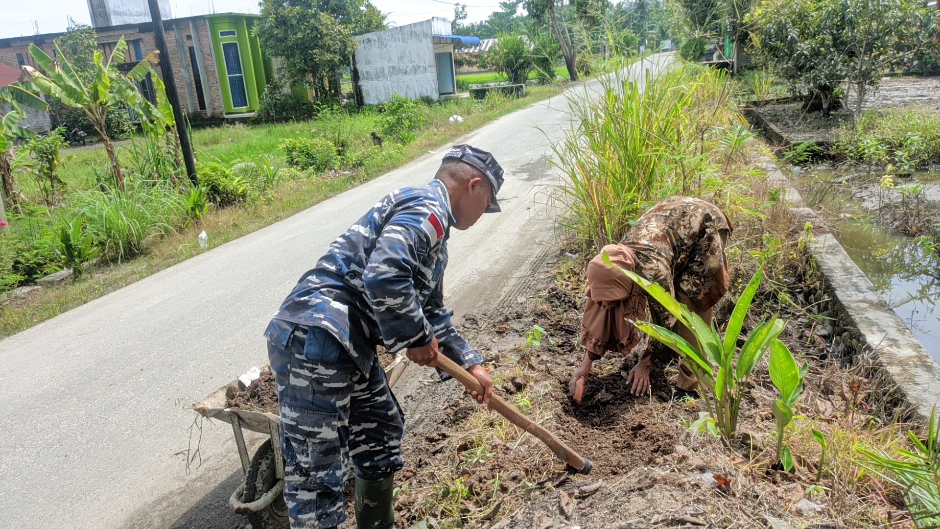 JN | TNI AL, Tanjung Balai,- Babinpotmar Posal Bandar Khalifah Lanal TBA Serda Ariyadi bersama Ketua PKK Desa Gelam Sei Serimah Kecamatan Bandar Khalifah serta Perangkat Desa membudidayakan tanaman apotik hidup di pekarangan Kantor Desa, Senin (19/12/2022).